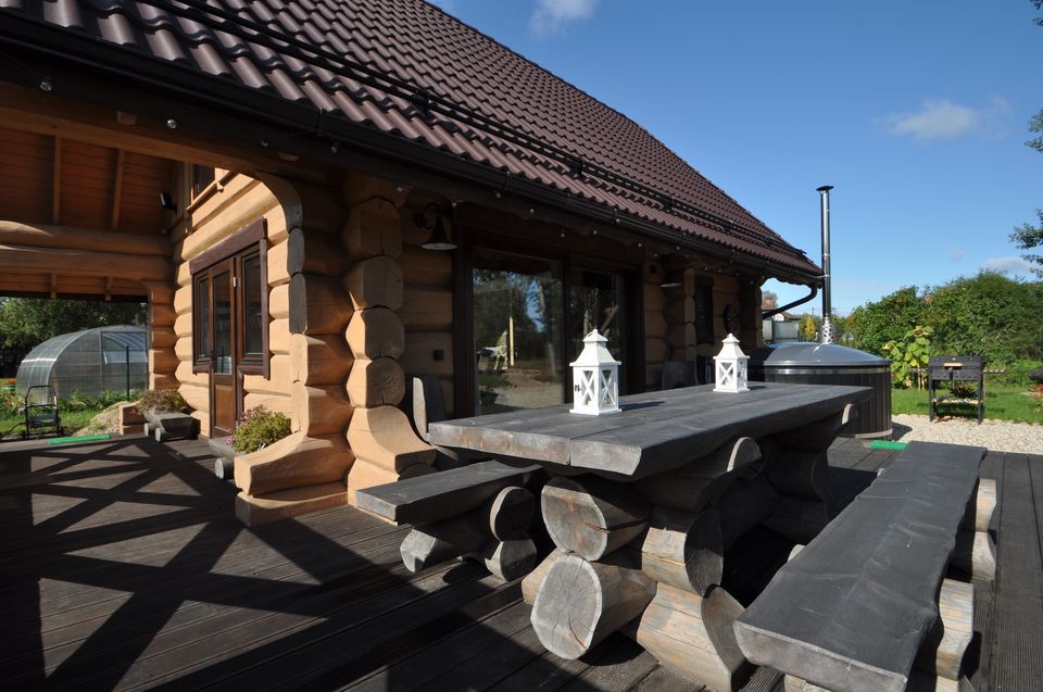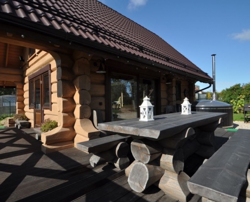 Log houses building. Houses, saunas, holiday houses, pergolas, workshops, garages, garden furniture, log stairs, hardwood decorations.